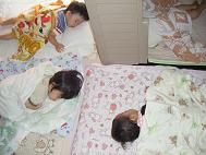 今回は、いたずらっ子よし君のいたずら行動を激写 楽々と、ベッドの柵越え ベッドで、まったり 撮られている事に気づき・・・ 素早く降りる、よし君です みんな良い笑顔をしています