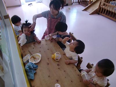 している子供達もいれば、雨の音に耳を傾け不思議そうな顔をしている赤ちゃん